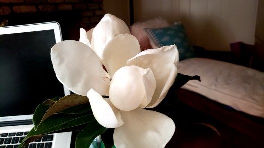 Remembering our nature walks, I knew the baby in my dream was my grandson, Christian, the runner. I would not let him walk in his tiny gym shoes and carried him for protection. Camille researched Magnolia Trees and found they symbolize independence. I told Christian to touch the tree, which I am discerning symbolized my blessing him, for the independence I knew had to be his. Anyway…