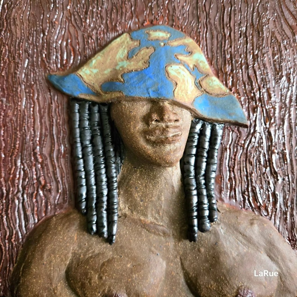 Christine โLizโ LaRue is a clay artist and illustrationist. She is known for her intricately textured figurative sculptures and emotionally illustrative drawings. Chicago-born though also raised in Utah and Idaho, Ms. LaRue is of Creole/Cuban descent. Her art has been influenced by her Afro-Latino heritage. Ms. LaRueโs interests have been in pre-Columbian art of the Olmec, Maya of Mexico, Nazca, and Moche face pots of Peru. This also includes the bronze sculptures of the Ife of Nigeria and Tฤ Moko tattoo art of the Maลri.